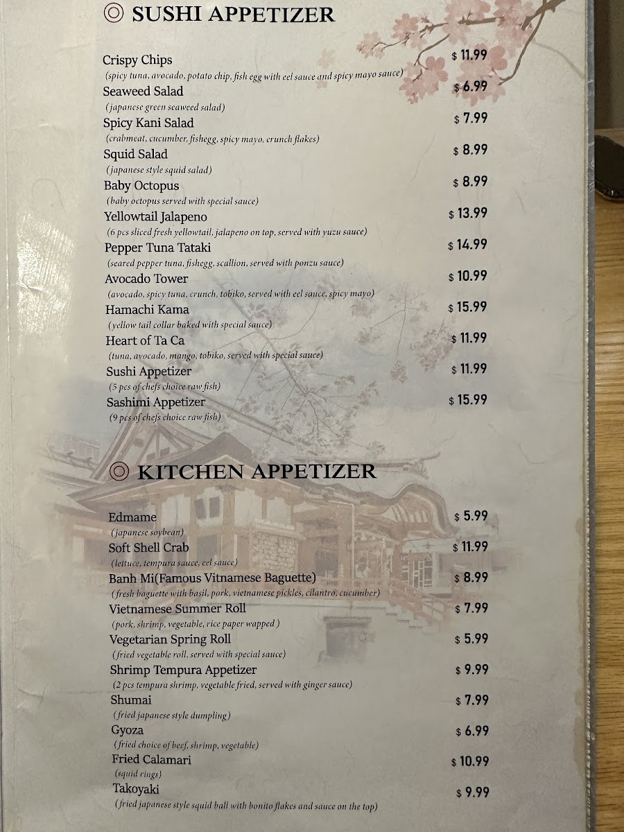 Ta Ca Asian Fusion & Sushi Bar Menu